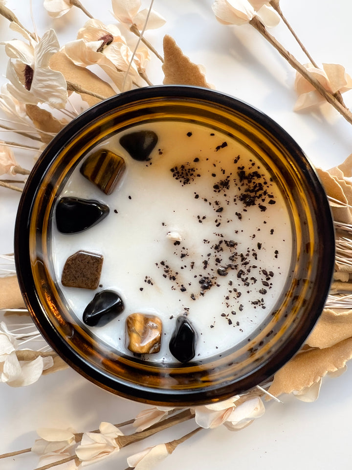 Burn our crystal and Intention candles to aid in your manifestations or just enjoy the overall vibes each one puts into your space. Each Candle has its own unique power.